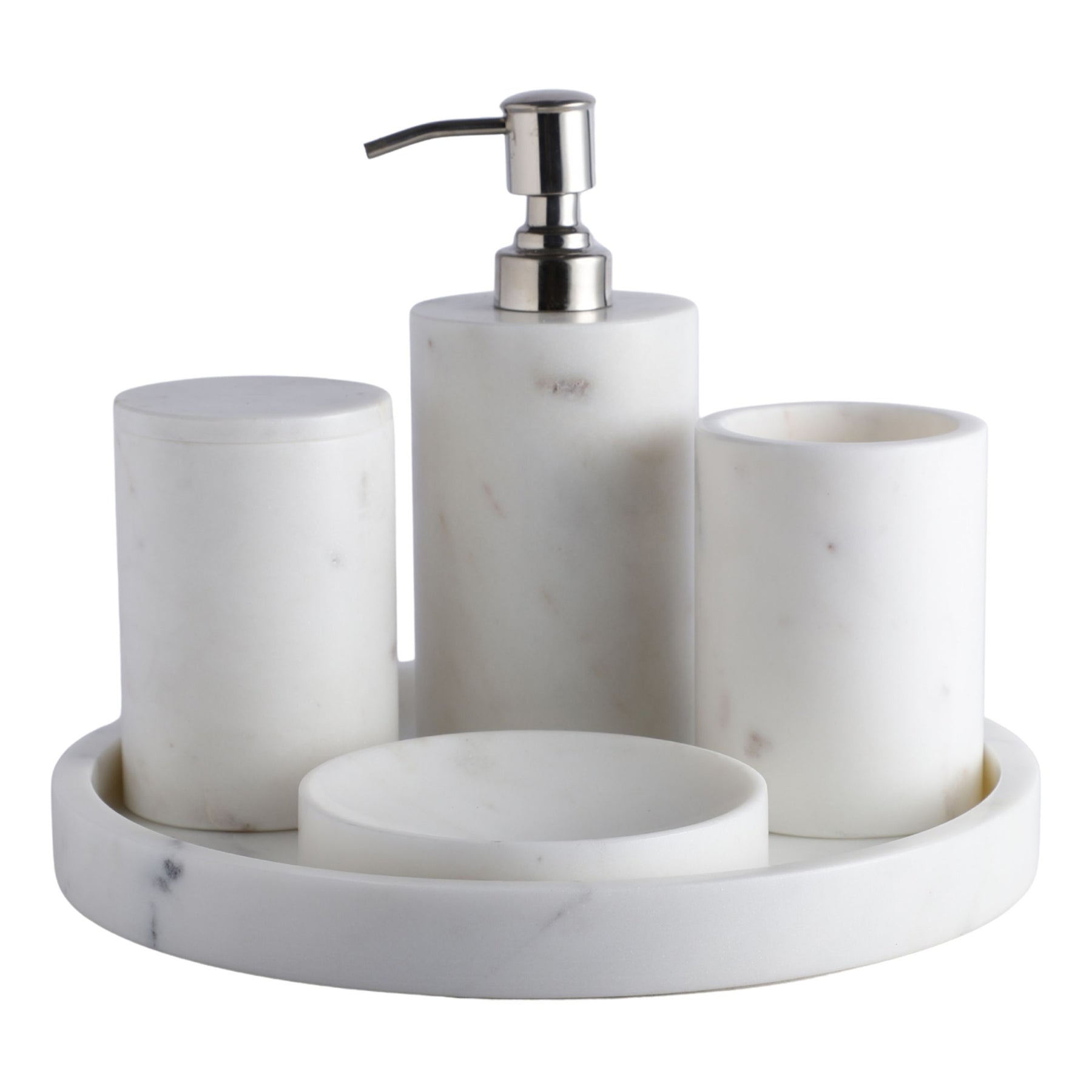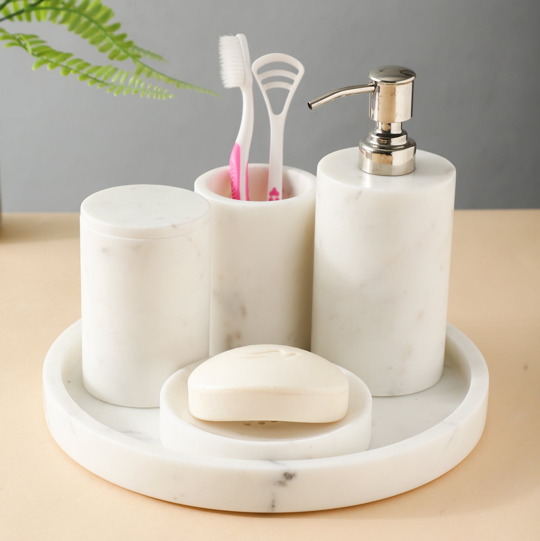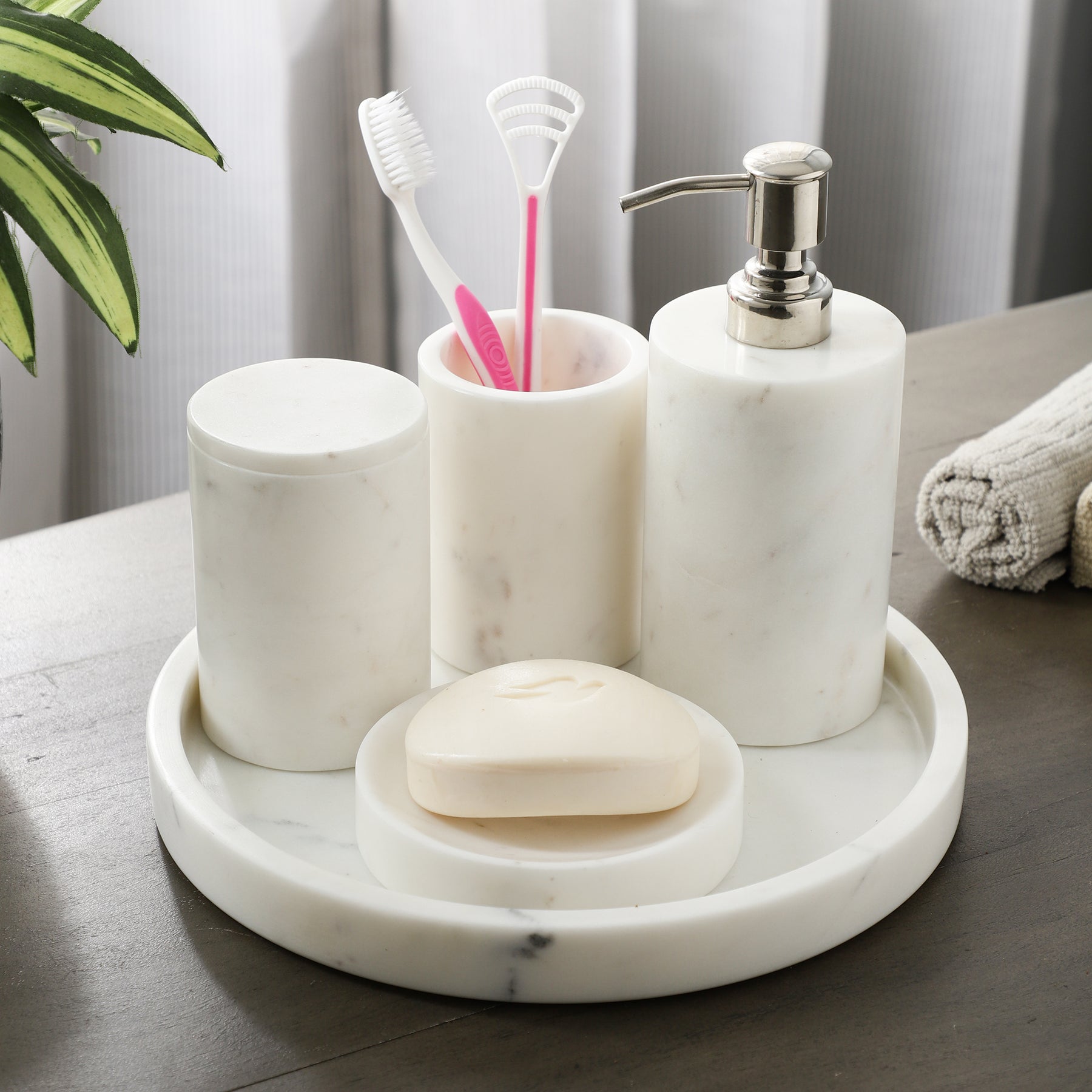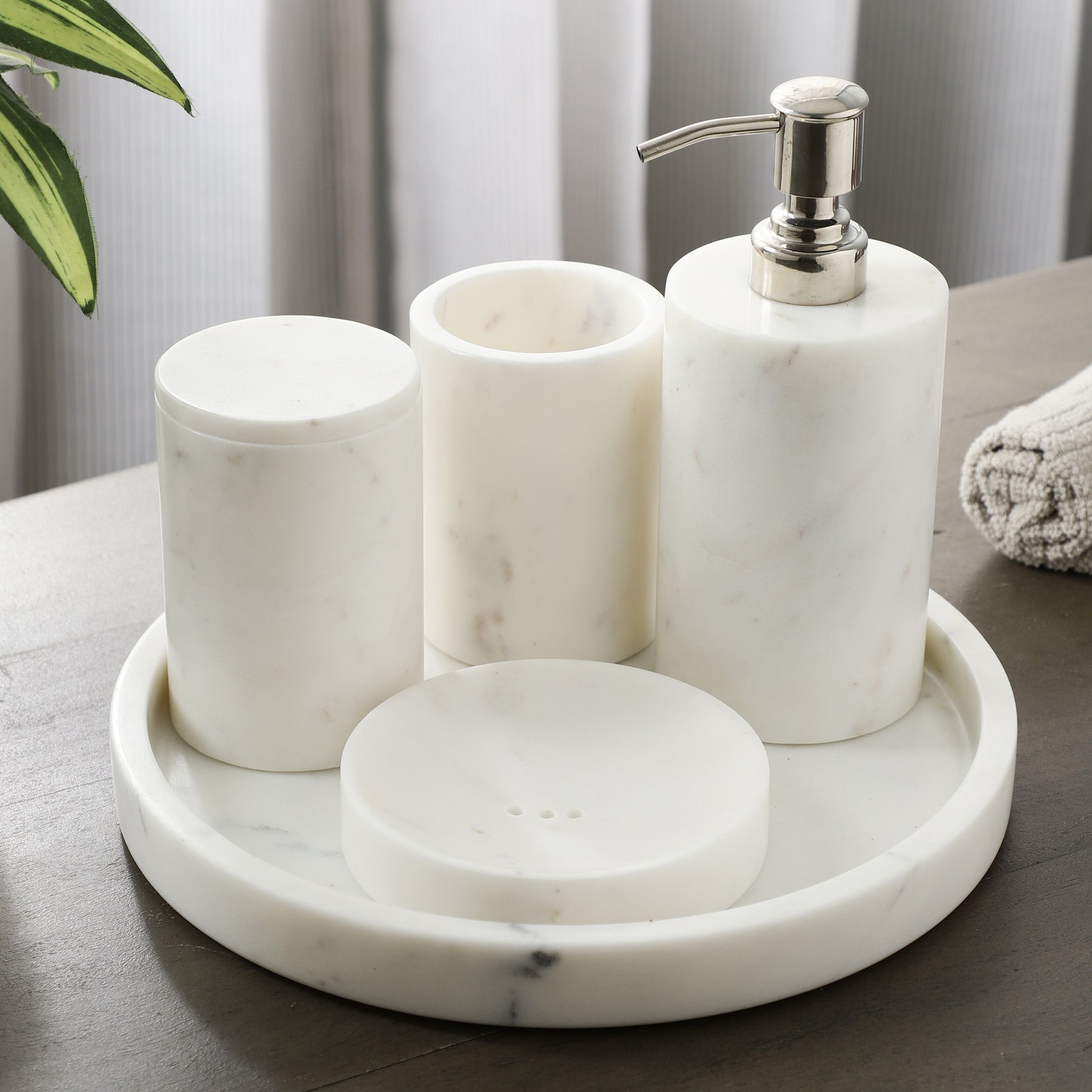 Marble bath products are handcrafted home décor items that radiate a modern charm blended with traditional artistry. You’ll find minimal functional items in our collection of luxury bathroom accessories like a toothbrush holder, cotton box, soap dispenser, vanity tray, and stylish bath set.