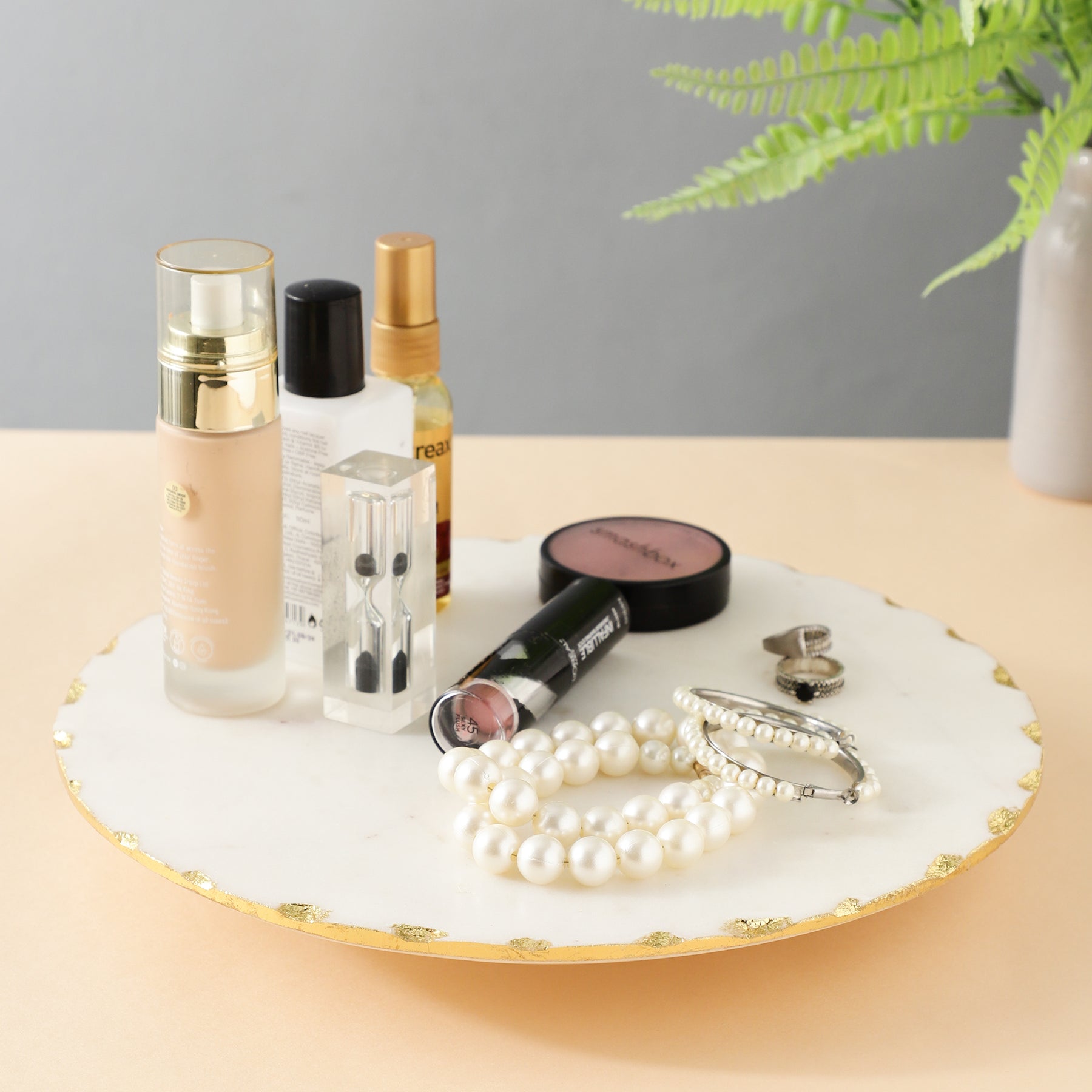 Enhance your home with this stunning white marble lazy susan 360degree rotating platter , carefully crafted from authentic Marble. The elegant White Gold tone complements any setting, adding charm and sophistication. It is not just a stylish piece but also highly durable and practical for everyday use. Whether as a thoughtful gift or a personal treat, this product is sure to impress with its timeless appeal.